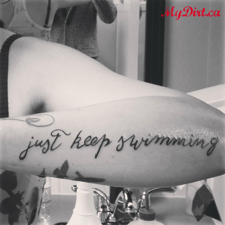 This tattoo signifies my action plan for when time gets tough. So in the great words of a tiny cartoon fish, just keep swimming.