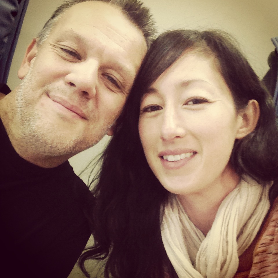 You and your spouse cuddled in each others arms. Kissing optional.